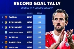体育资讯4月20日讯 拜仁在本轮德甲4-2击败斯图加特,本赛季联赛进球已109球,《转会市场》统计显示拜仁单赛季进球数暂时位列五大联赛球队历史第12位。