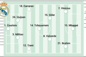 体育资讯8月19日讯 西甲首轮,皇马将在主场迎战奥萨苏纳。赛前,西媒《阿斯报》预测了本场的首发名单,费兰-门迪、吕迪格(因国王杯决赛红牌停赛)、卡马文加、贝林厄姆和恩德里克缺阵,巴尔韦德回归。